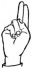 На ћирилици написано ЉУБИЦА ФИЛИПЧЕВИЋ састоји се из 16 слова [?]. Исписано ћириличном једноручном азбуком за глувонеме: